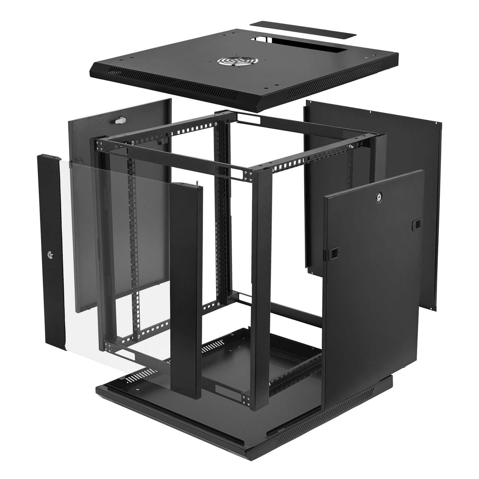 Ideal para oficinas, empresas o salas técnicas, viene con kit de tornillos M6 y bandeja 2U incluida para facilitar el montaje. Color negro profesional y puertas con cerradura para mayor seguridad.