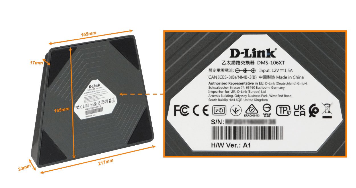 DMS-106XT – D-LINK 5-2500 1-10G Switch no-admin no-rack inc/12VDC-1,5A